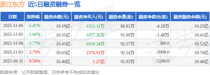 证券之星音讯,到2025年11月6日收盘,浙江东方(600120)报收于7.01元,跌落1.41%,换手率4.55%,成交量155.56万手,成交额10.89亿元。
